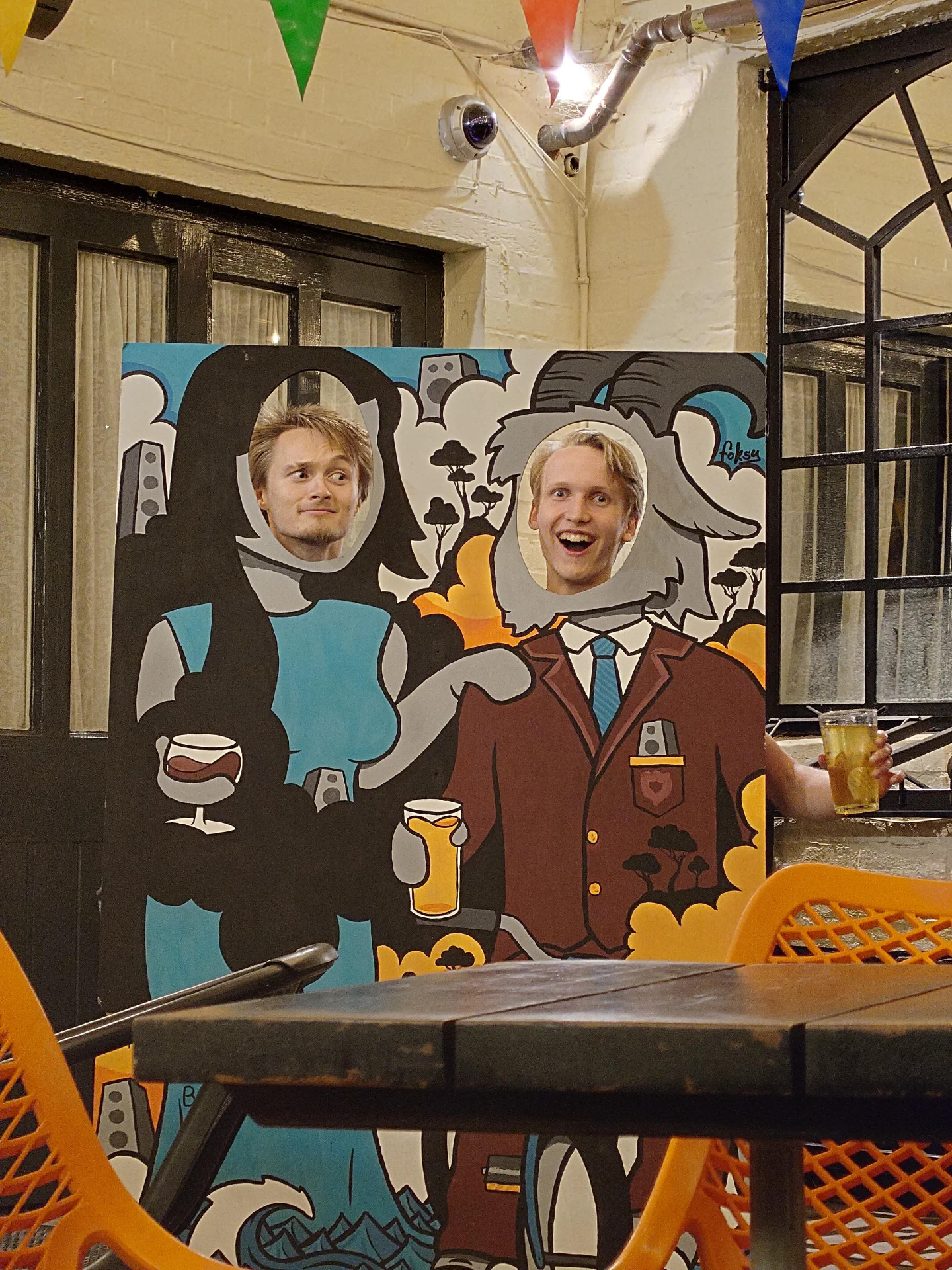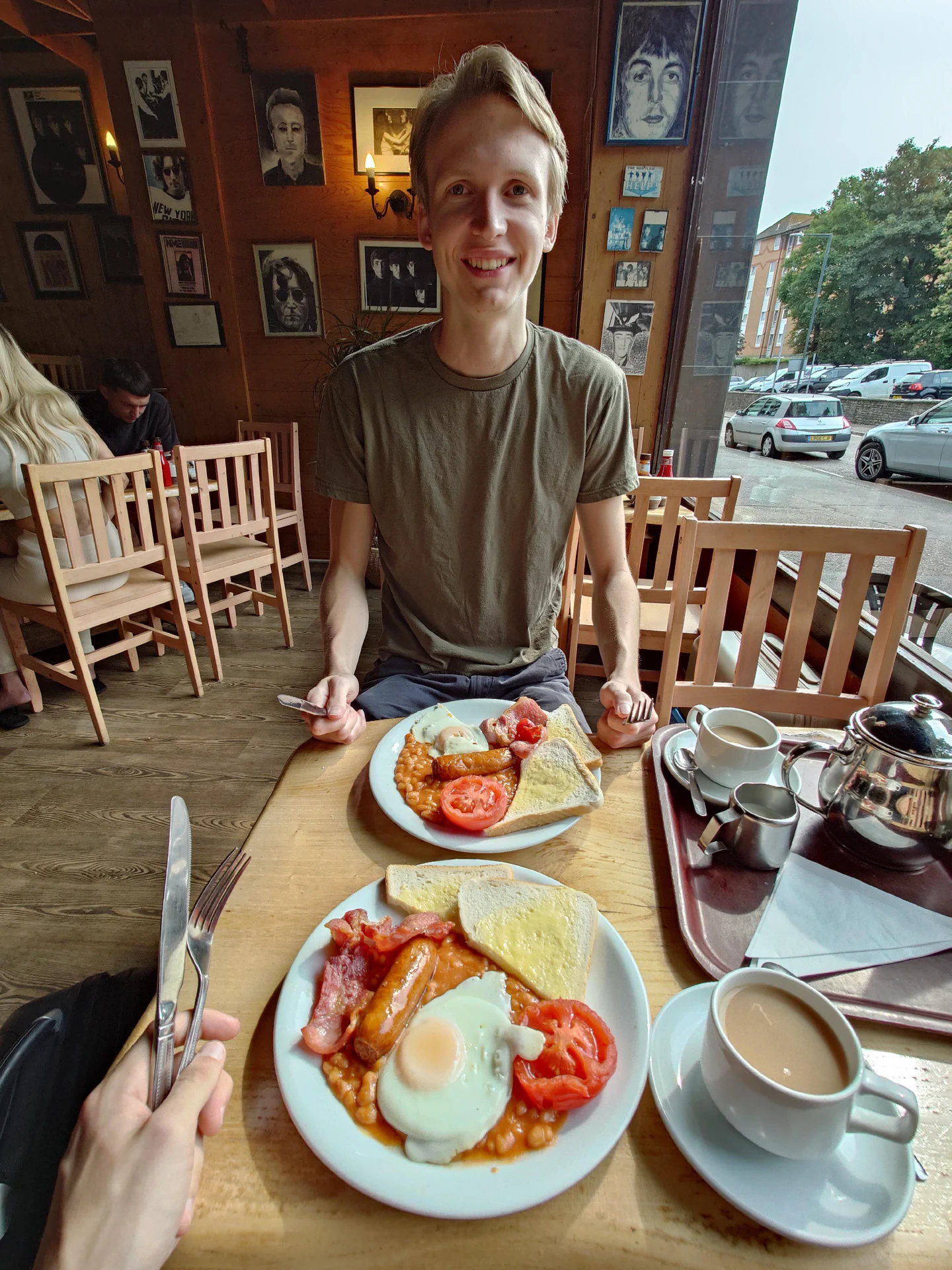Blandt disse gode folkene er min Svenske venn Sam H. Smith, skaper av Serenum, som jeg fikk tilbringe noen dager før helgen sammen med. Han er også er delvis Engelsk! Dette var første gang jeg møtte han i virkeligheten, og han ga en nøye introduksjon til Engelsk kultur. Fikk smakt riktig Engelsk frokost på en gammel Beatles-inspirert resturant ved navn Norwegian Wood, prøvde Sausage Rolls fra Greggs, dro på ASDA(!!!), dro på pub og drakk pints, pratet med lokalfolket, og jeg fikk forklart hvorfor asfalten er så ekstremt til lappverk over alt.