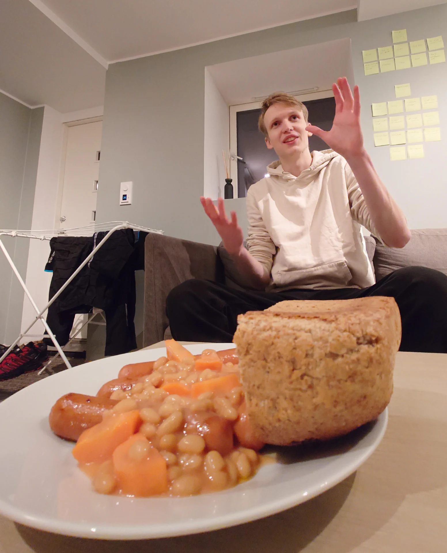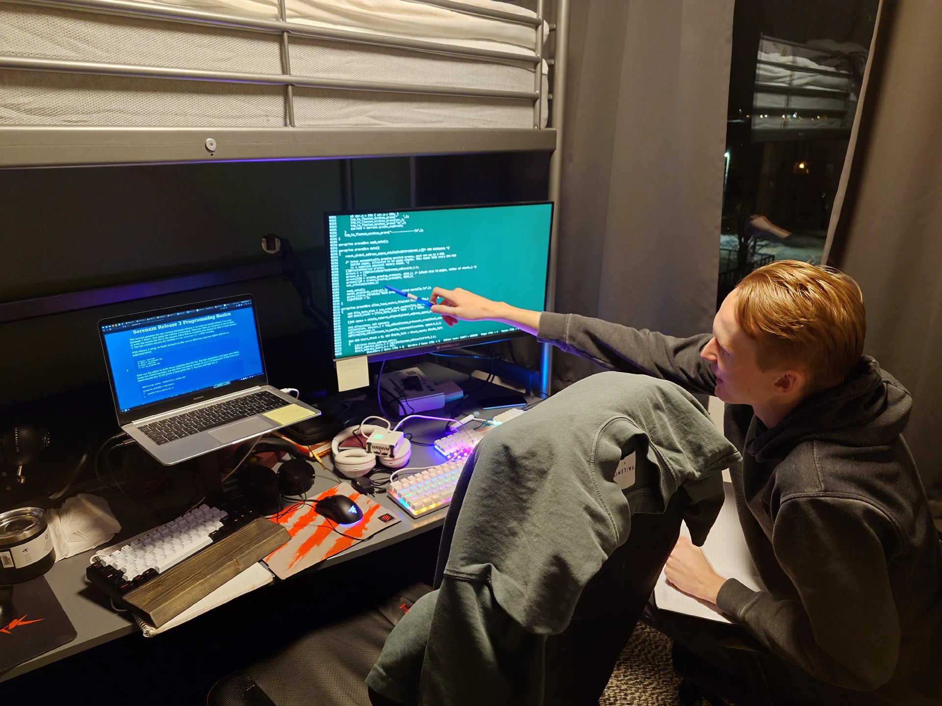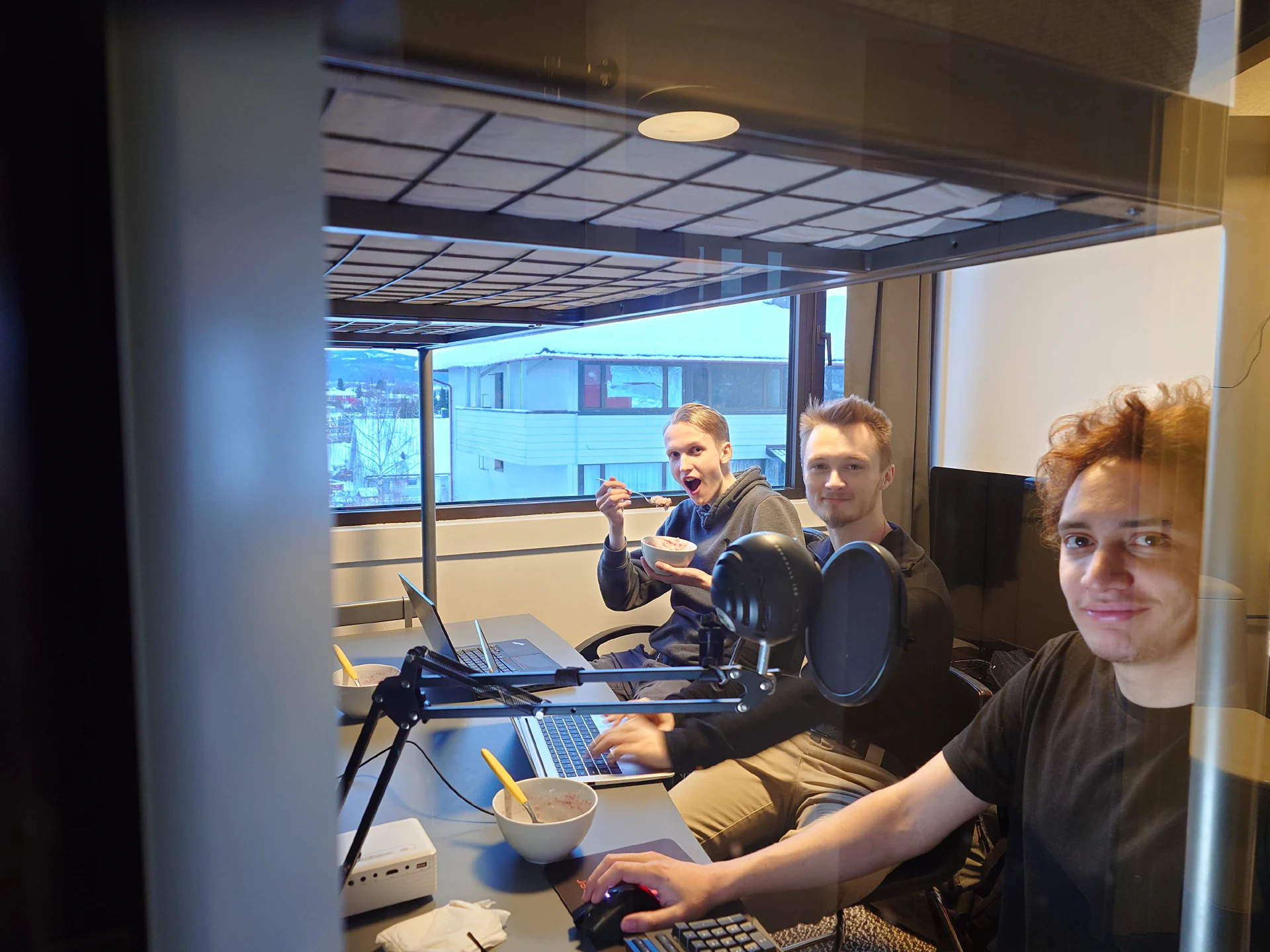 For noen år siden møttes vi på nett, og nå bestemte vi oss for å samles og gønne hardt på med programmering under den Norske mørketiden. Vi sov på gulvet, levde på pølse og kneipbrød til middag, “gröt med lingonsylt” til frokost, og programmerte 10 timer dagen.