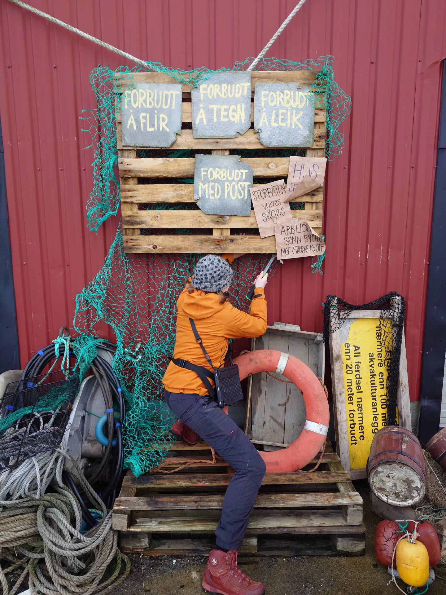 Rune lagde en fiskenetting-køye-greie å ligge på. Dere burde ha sett når gutta først skulle gi seg ut for å ligge på den. Veldig bra TV.