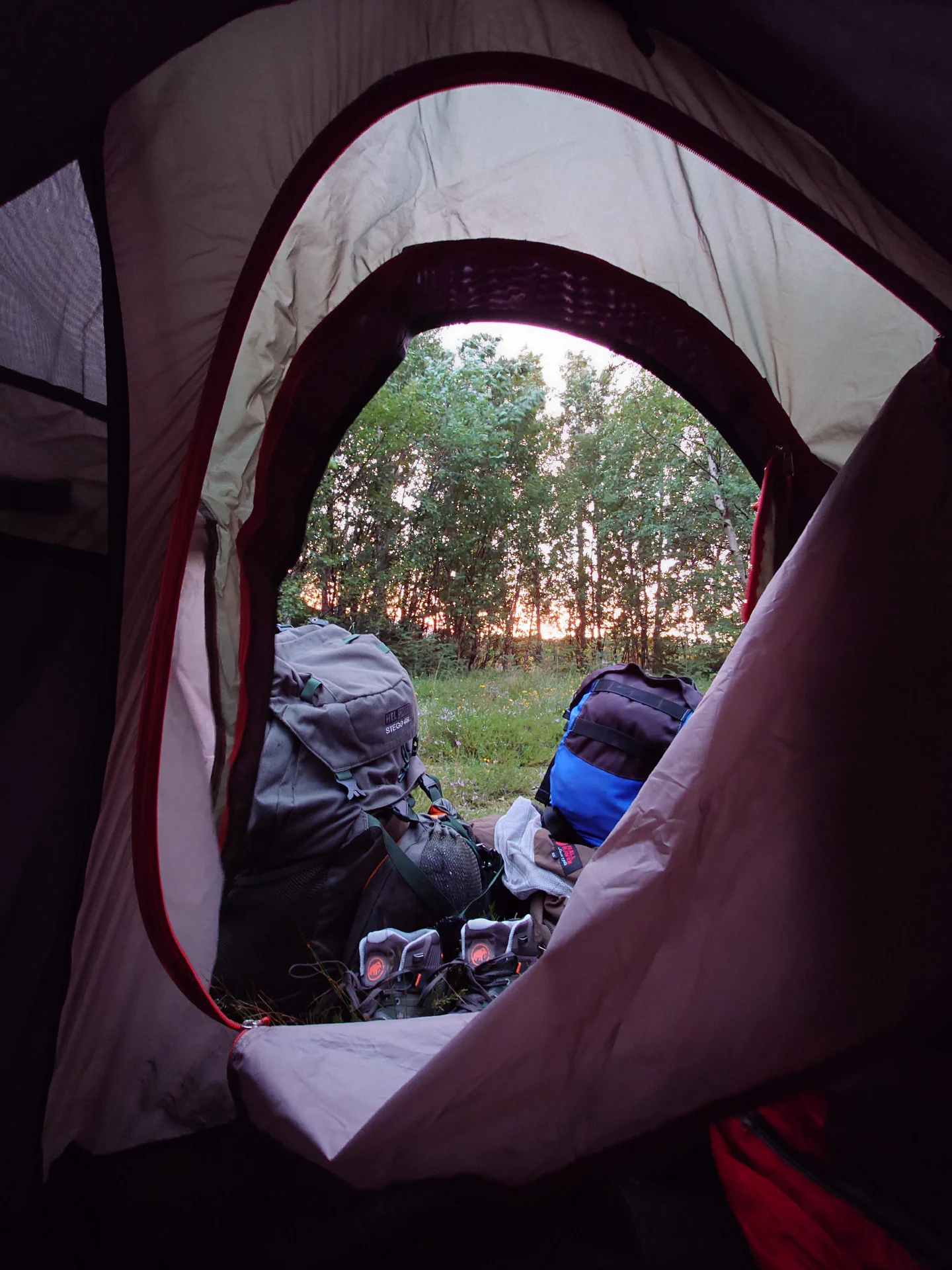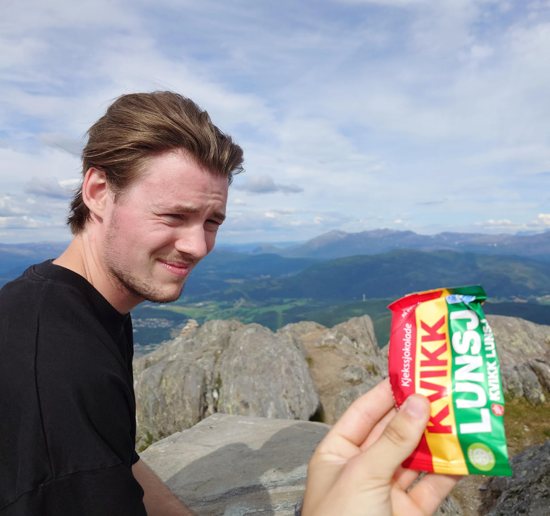 Men en pinne i hjulet på de planene halvveis opp til første topp, når vi fikk tilfeldigvis vite av noen andre fjellgeiter at det var meldt tordenstorm til natten. Lite lurt å være på et tusenmetersfjell i et telt midt under en tordenstorm, så da var det bare å komme seg ned igjen til kvelden, finne et sted å telte, og fyre opp litt Real kveldsmat.
